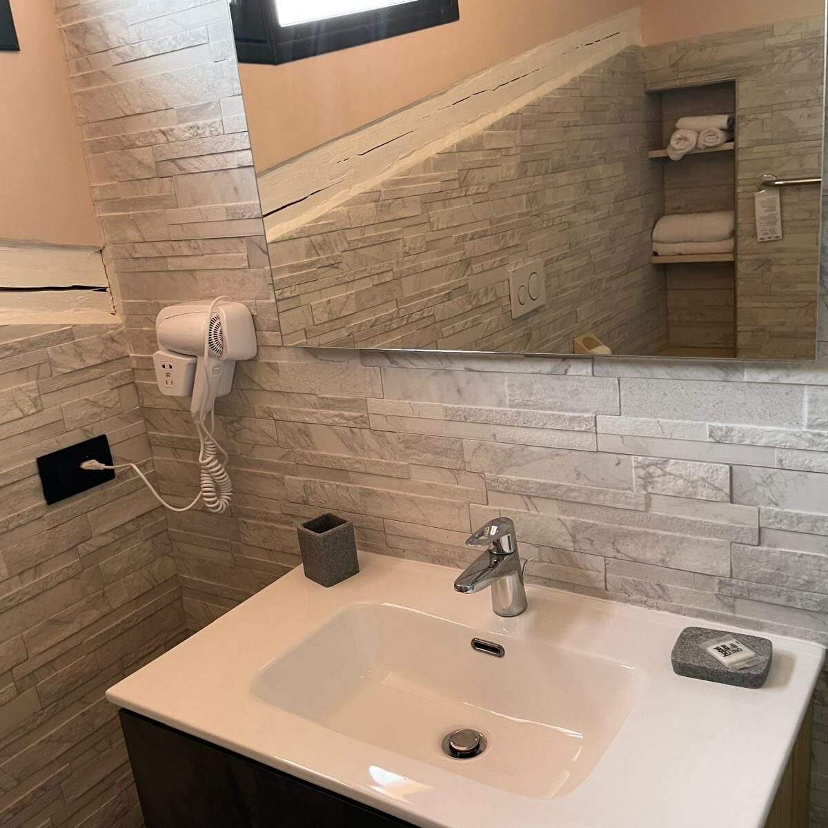 - Bagno: Bagno privato con doccia, piastrelle in ceramica, asciugamani morbidi e set di cortesia ecologici.